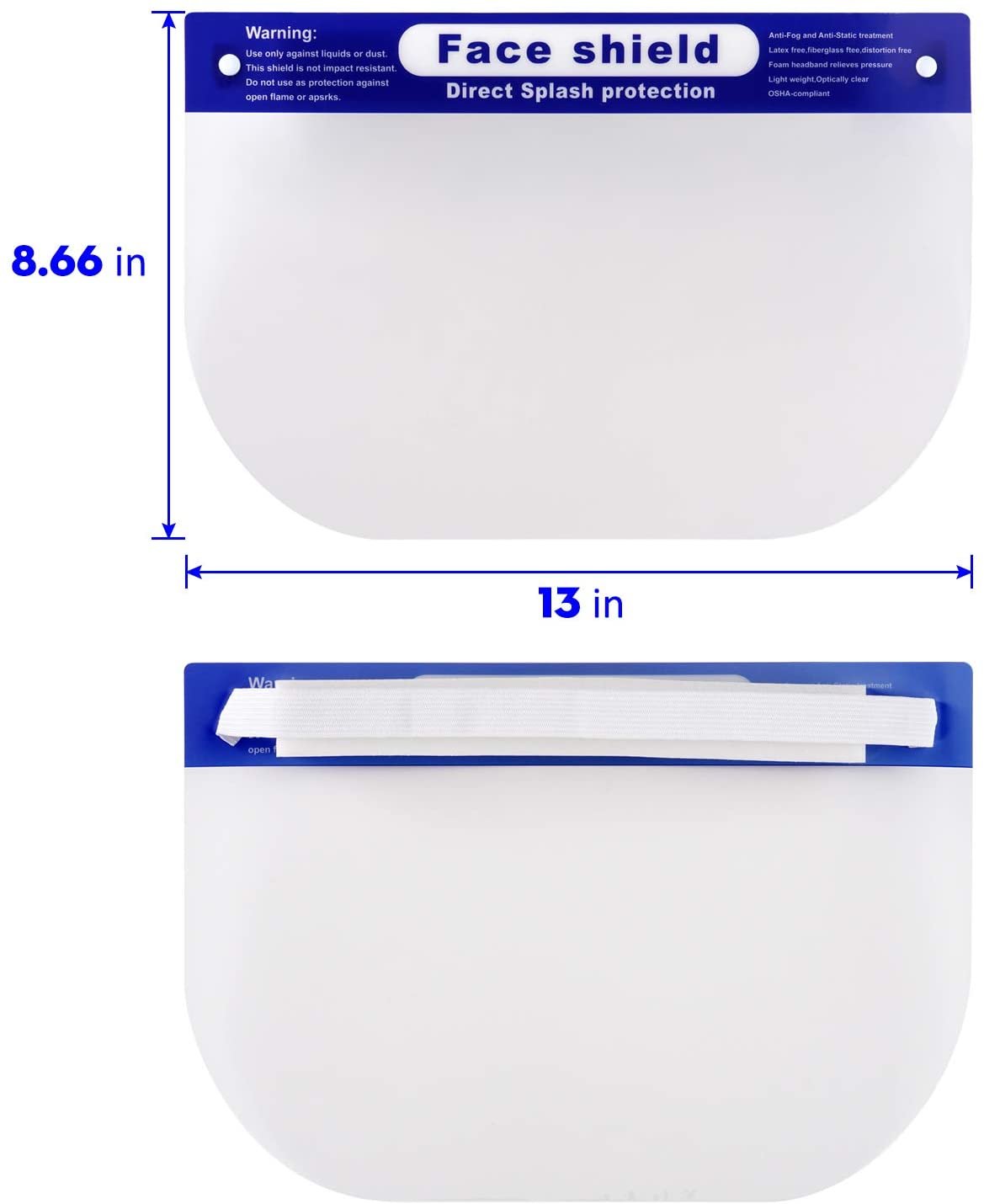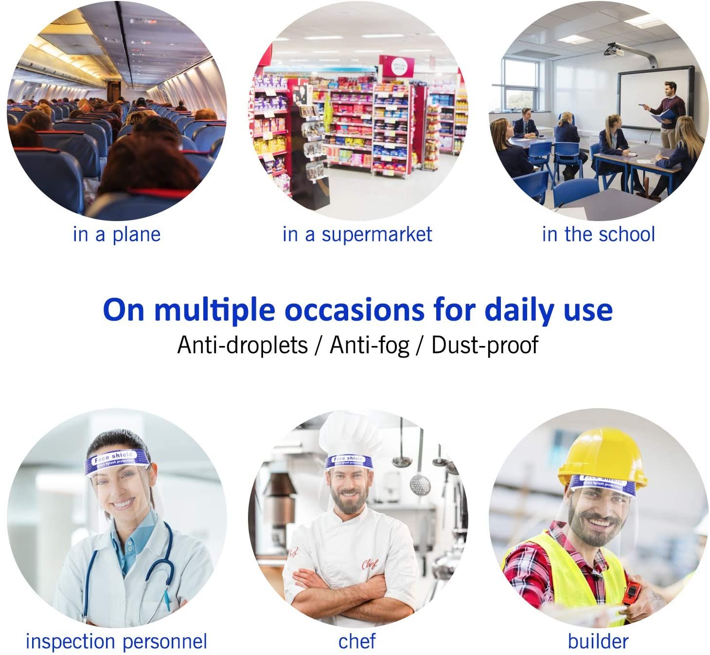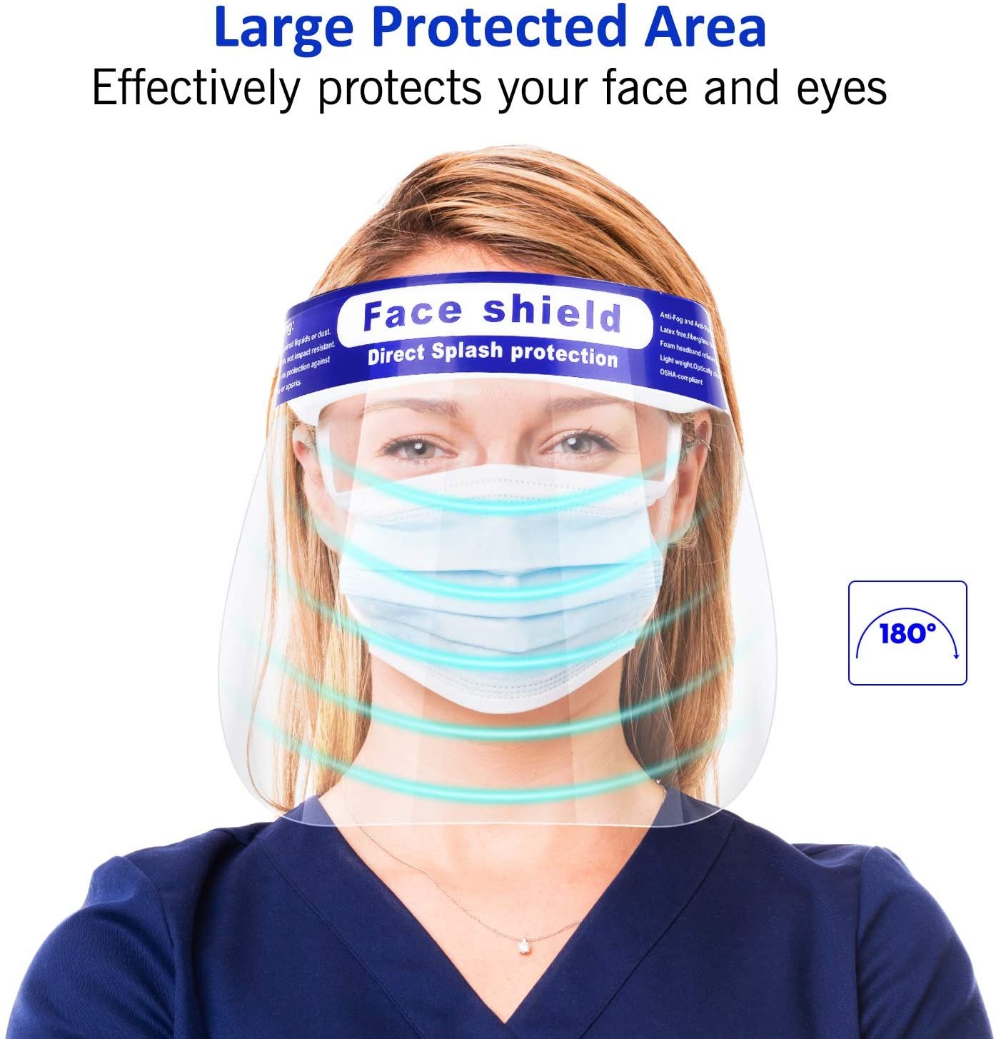 Full Face Protection: Covers eyes, nose, and mouth to reduce exposure to droplets from coughing, sneezing, or liquids.