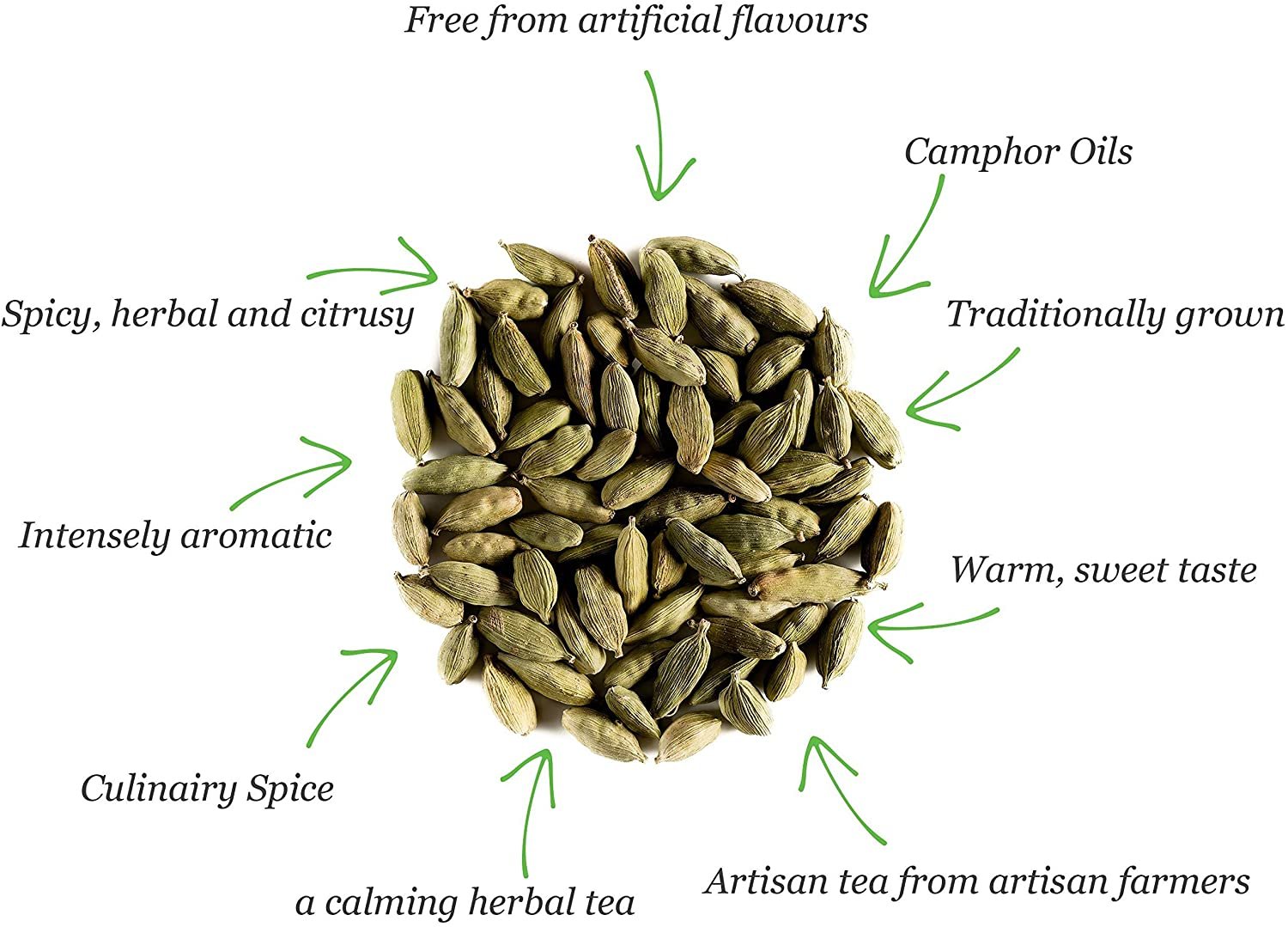 Product Description: The whole dried pods of the plant Elettaria cardamonum